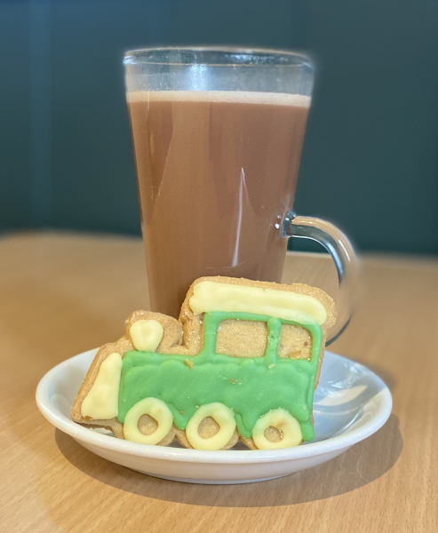 Enjoy a delicious hot chocolate and treat in our cozy tearoom or take away to enjoy on your festive train ride!